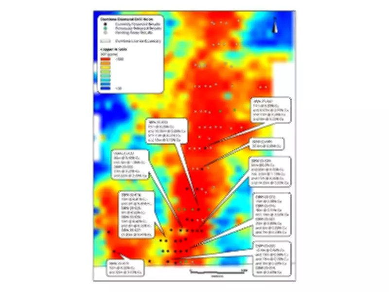 These intercepts demonstrate consistent copper mineralization at shallow depths, which is crucial for cost-effective mining operations. The company's methodical approach of delineating the system in 100 to 200 metre increments along strike has proven effective in rapidly revealing the true scale of this copper deposit.