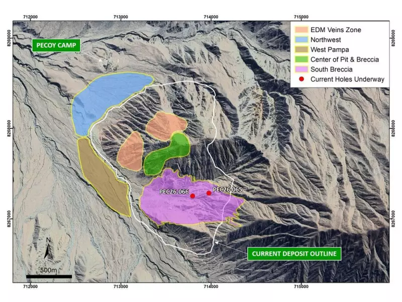 The program builds upon recent geological reinterpretation of historical and current drilling data, which points to multiple mineralized centers and significant upside potential from both extensions of known zones and new discoveries. The company notes that within the Pecoy system, multiple breccia bodies characterized by matrix and clast-supported sulphide mineralization remain open laterally and at depth.