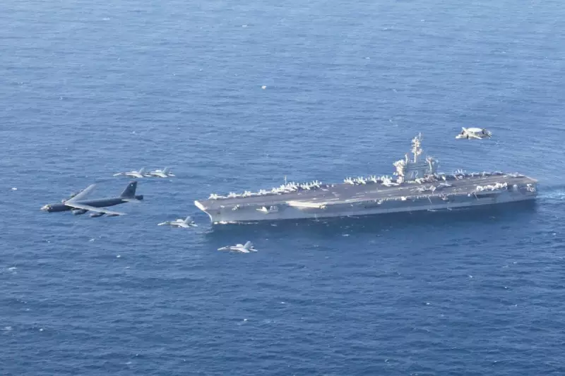 Historical instances, such as joint exercises between assets like the USS Abraham Lincoln aircraft carrier and U.S. Air Force B-52H Stratofortress bombers, are cited by Iranian officials as examples of destabilizing American power projection near their borders.