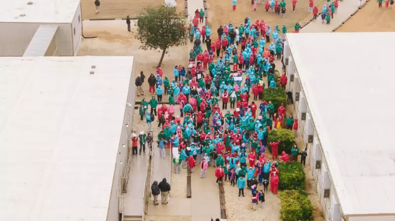 Aerial photographs captured by The Associated Press revealed children and parents bundled in jackets and sweaters against the winter chill, many holding handmade signs with messages including "Libertad para los niños" (Liberty for the kids). The visual documentation provided a stark glimpse into the conditions and emotions at the facility.